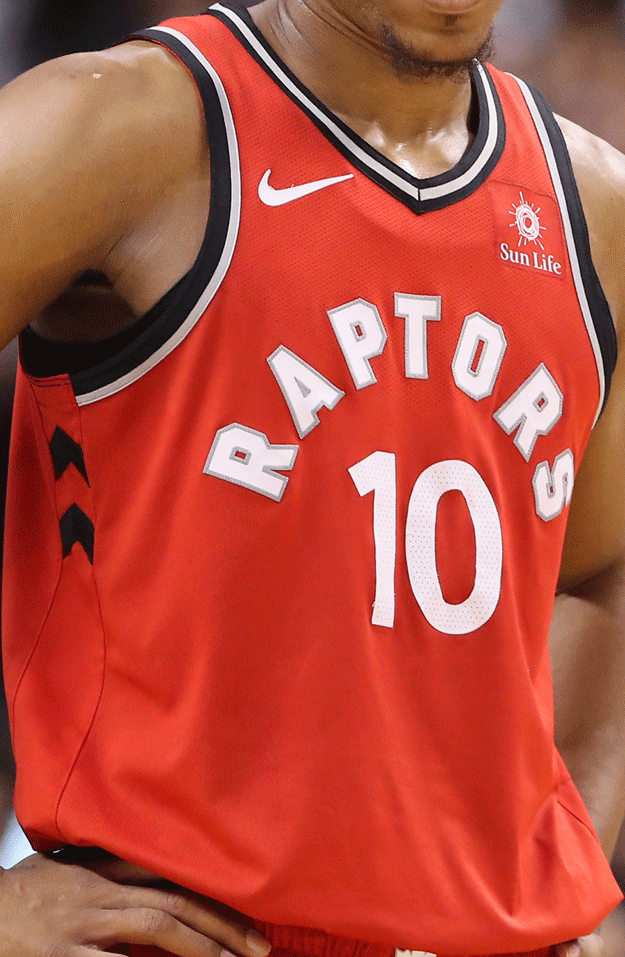 This was a fun project because we started it before Kawhi Leonard arrived in Toronto, meaning we didn't have any photos of him in Raptors uniforms yet. We knew that he would be number 2, so I had to go to work. Step one was finding a great image of Kawhi, which was the easy part. Step two was to find another Raptors player in a similar position to him. I found the DeMar DeRozen image, first cut out the jersey using the pen tool in Photoshop, then removed the number 10 and replaced it with the number 2.